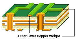 وزن مس بر حسب اونس در هر فوت مربع از PCB، این گزینه ضخامت مس در لایههای خارجی را تعیین میکند.